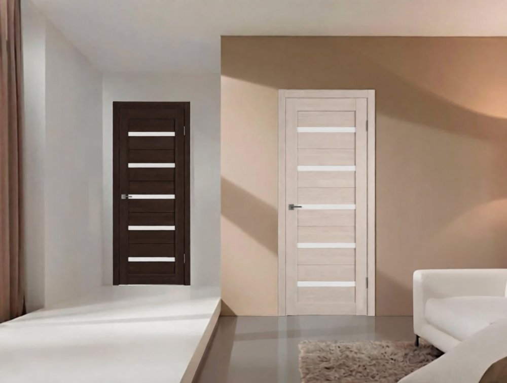 Ещё один актуальный приём — ориентироваться не на пол, а на стены. Если двери близки по цвету к стенам, они визуально растворяются в интерьере, а пол становится главным акцентом. В этом случае вопрос, что темнее, теряет принципиальное значение.