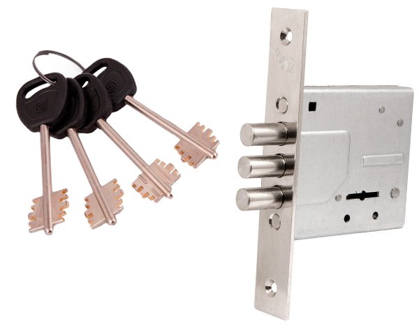 Главное преимущество таких механизмов — надёжность и устойчивость к силовому взлому. Сувальдный замок сложно выбить или высверлить, так как конструкция массивная и выполнена из прочной стали. Он идеально подходит для входных дверей из металла и часто используется в домах, где важно физическое сопротивление взлому.
