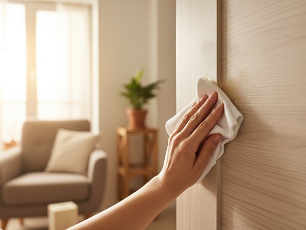Прежде чем приступать к чистке, важно оценить тип поверхности. Для лакированных и глянцевых дверей нельзя использовать абразивные губки и сильные растворители — они могут оставить матовые пятна. Лучшее решение — мягкая ткань, тёплая вода с мылом или каплей жидкого средства для посуды.
