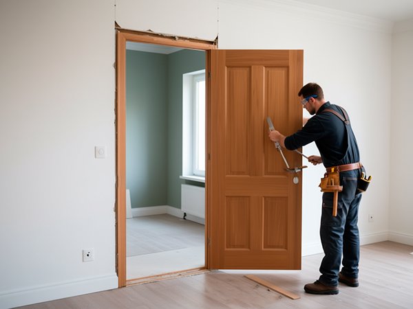 После снятия старой двери важно проверить геометрию проёма. Неровные или повреждённые участки нужно выровнять, а при необходимости заново оштукатурить. От качества подготовки зависит, насколько ровно станет новая дверь и как долго она прослужит. Даже дорогая модель при неправильном основании может «вести» или плохо закрываться.